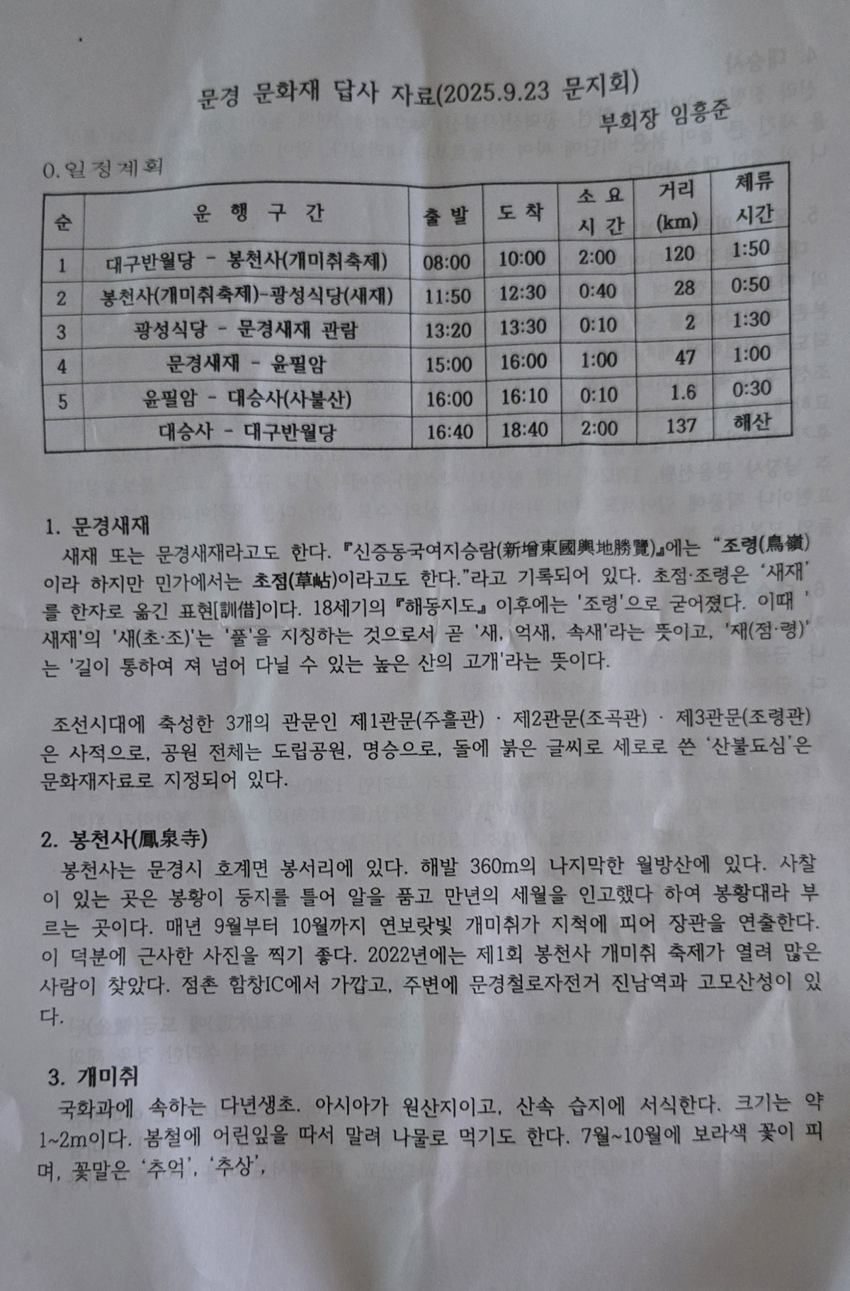 문경세재, 봉천사 및 개미취, 대승사, 운필암 답사