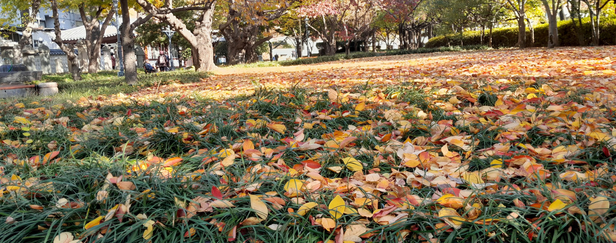 예쁘게 물들어서 떨어져 있는 고운 낙엽들이 아름답게 '수'를 놓고 있습니다.