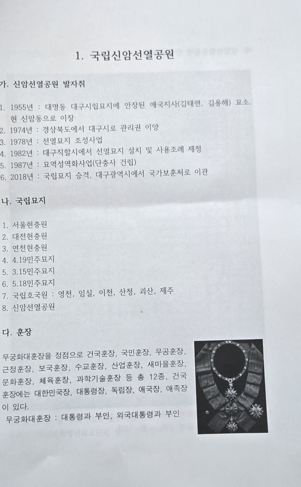 신암선열공원 발자취, 국립묘지, 훈장,